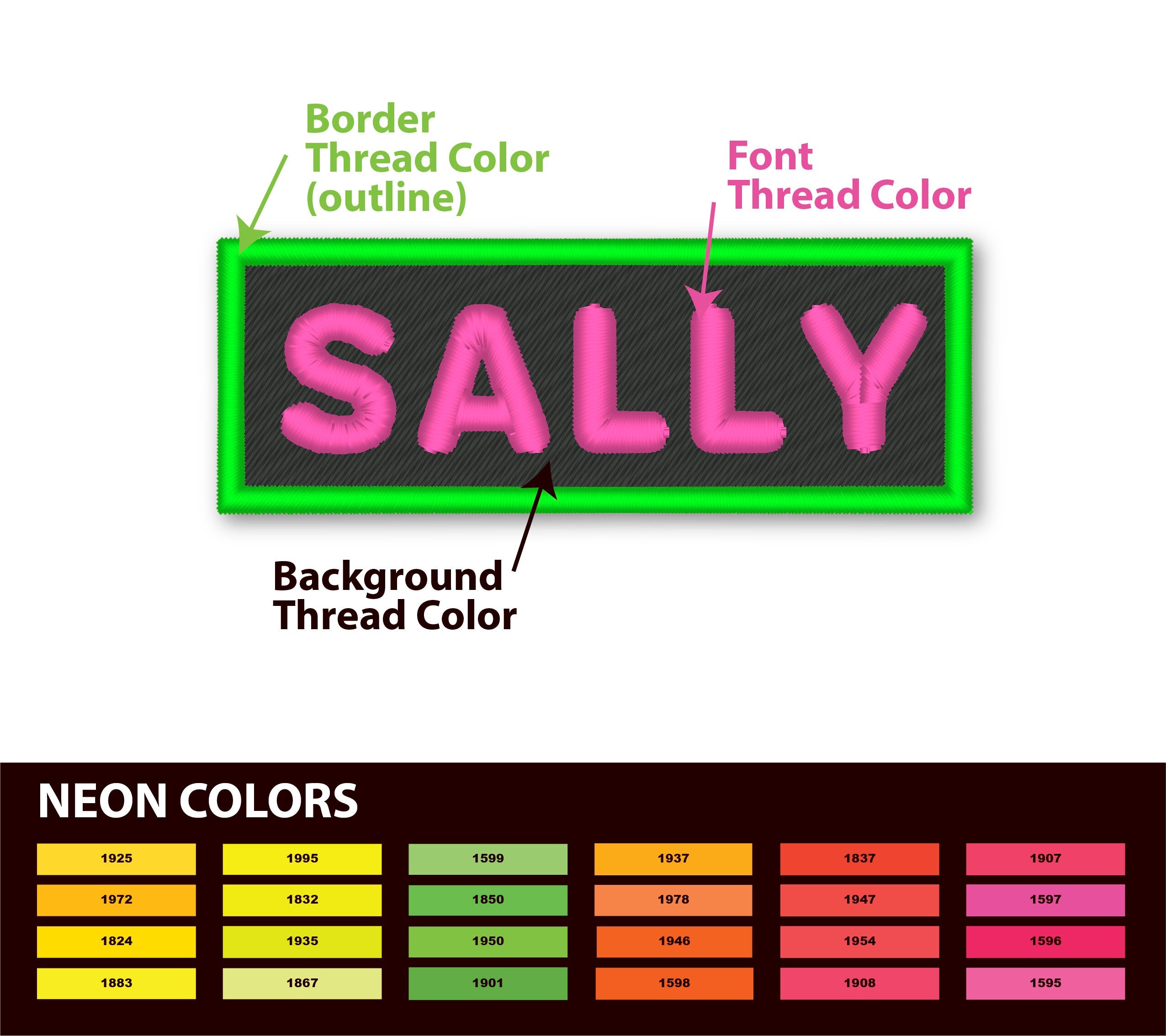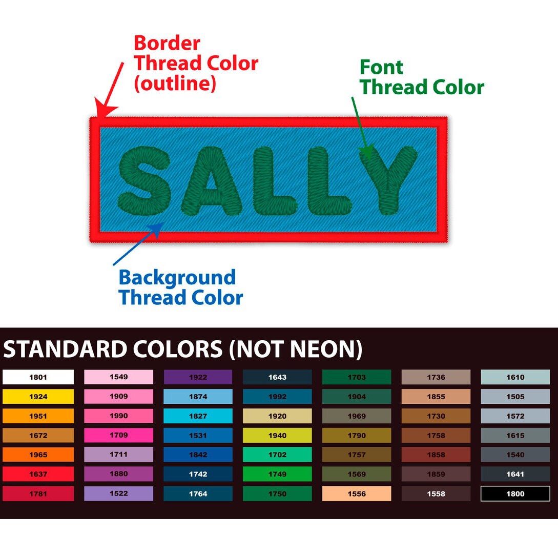 Fully made with thread. Choose separate colors for the background, border, and text. Durable and classic, perfect for jackets, bags, uniforms, and more. Easy to iron or sew on for a personalized look. Made to order, just for you.