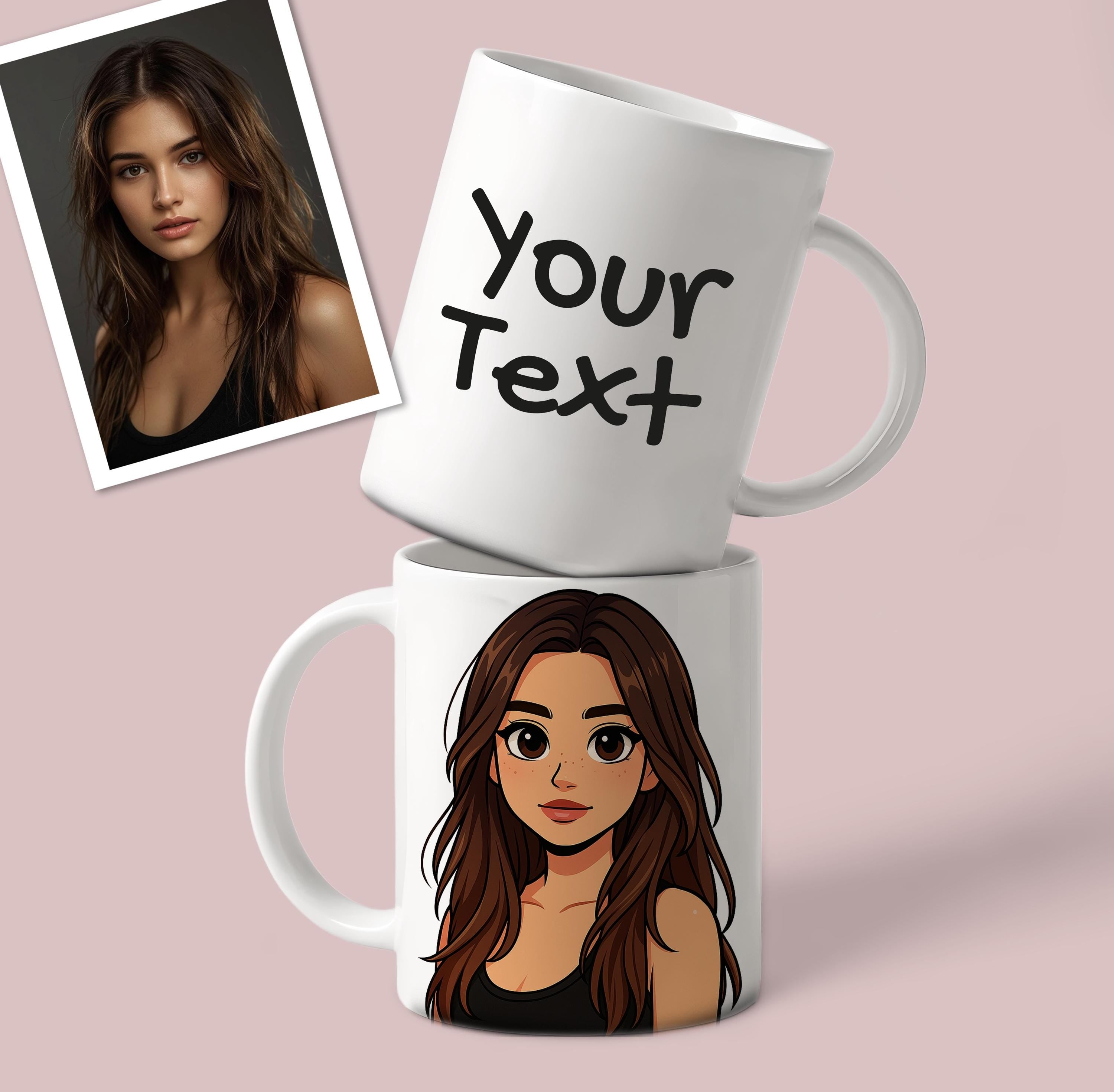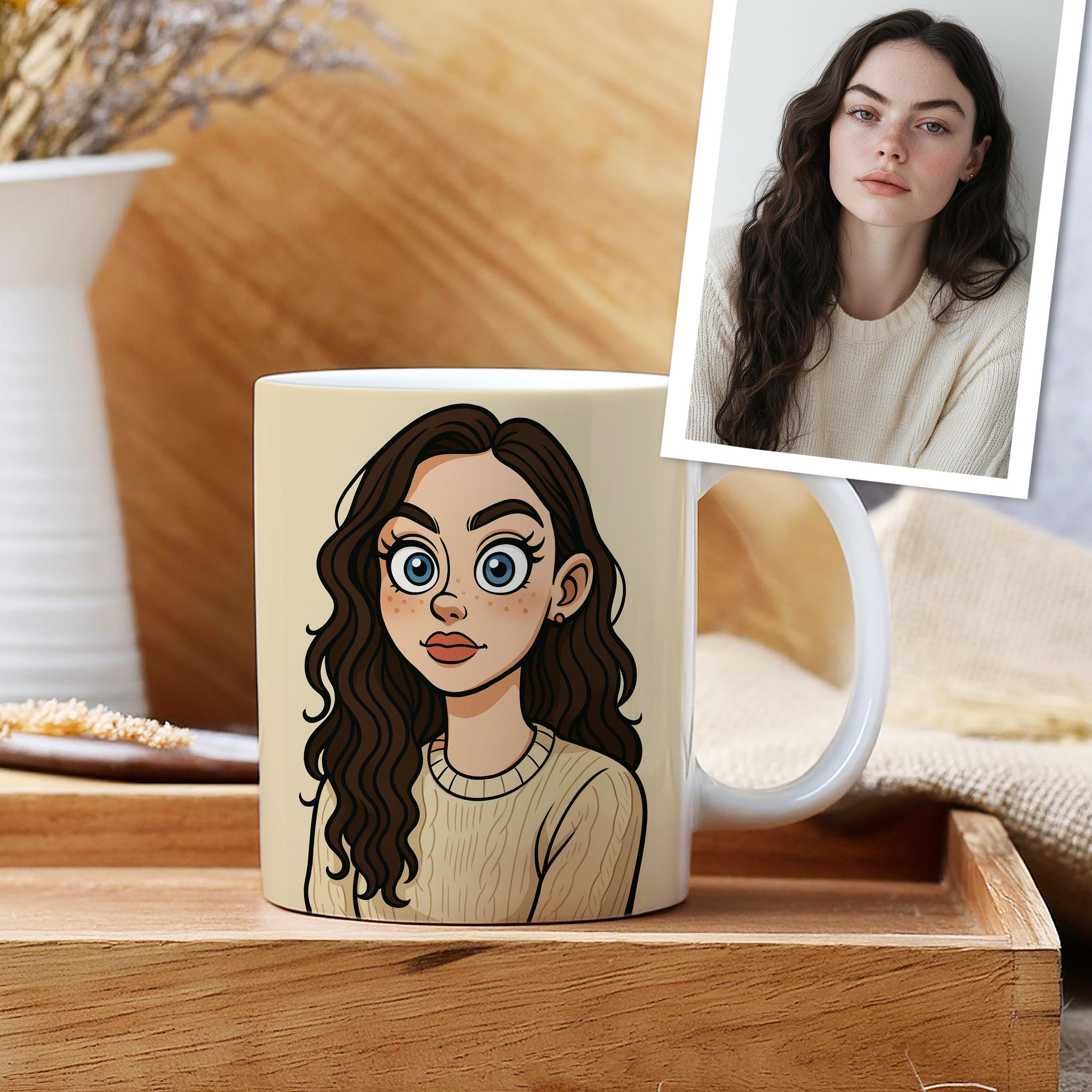 Personalized Cartoon Mug – Custom Photo Mug with Cute Toon Illustration Gift