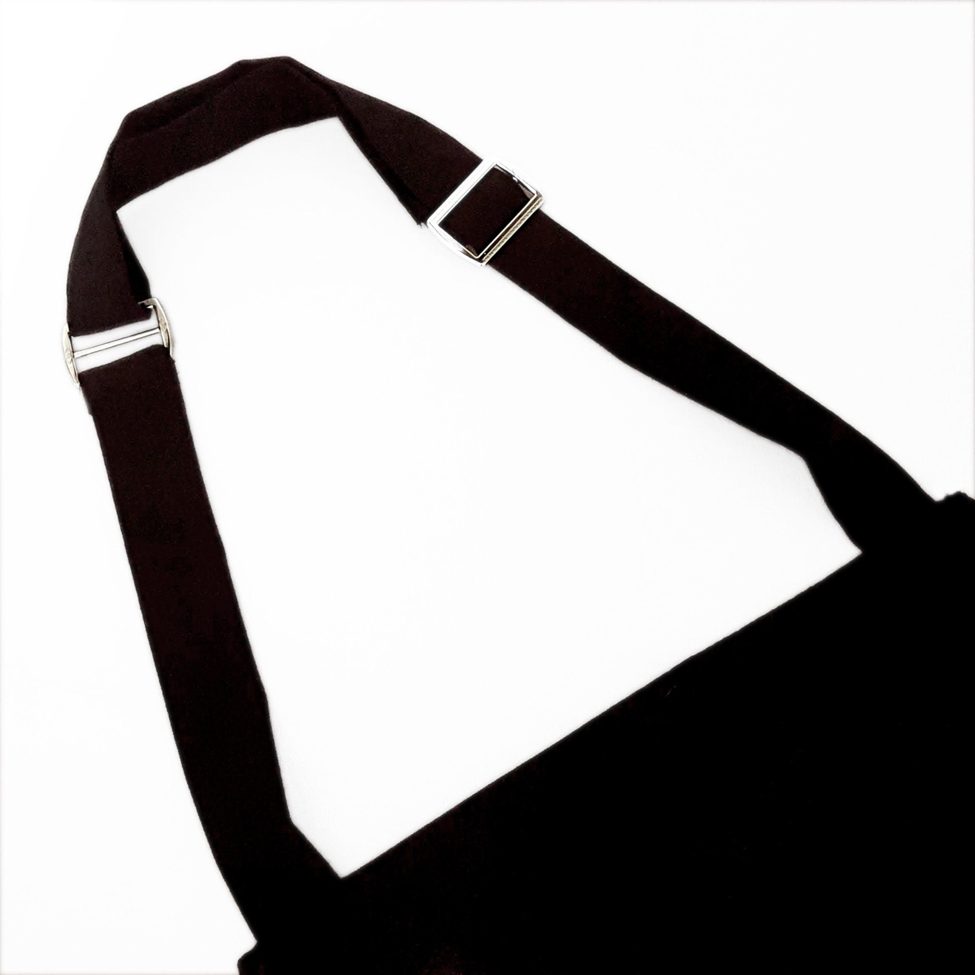 The apron has a pocket, and a metal buckle on the neck to adjust the length.