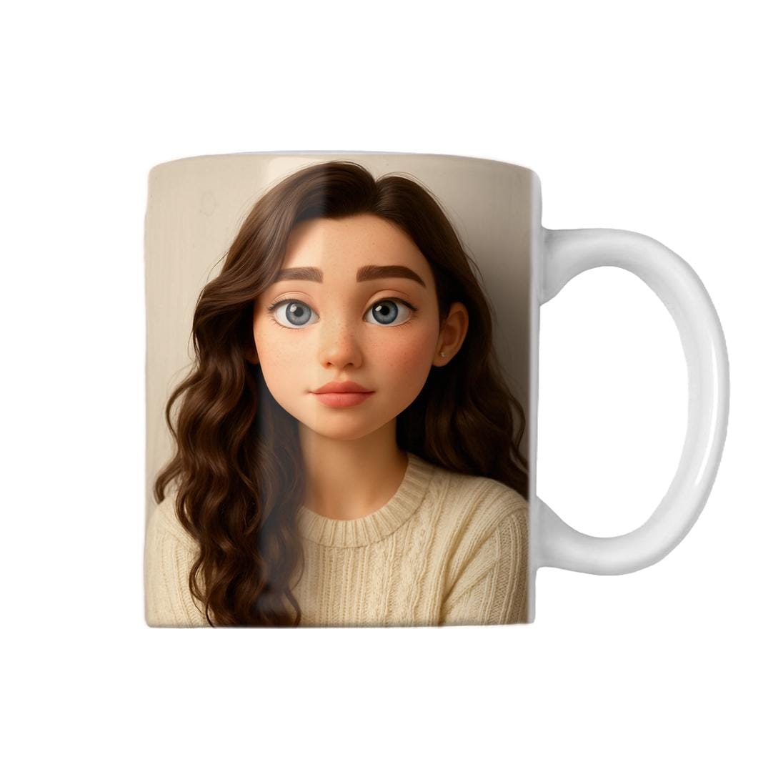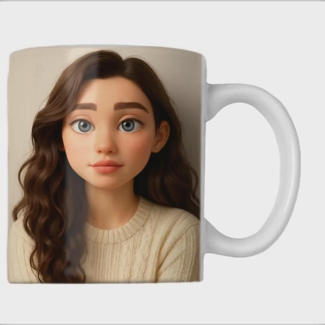 - Custom photo mug transformed into a 3D cartoon mug for a unique animated coffee cup experience